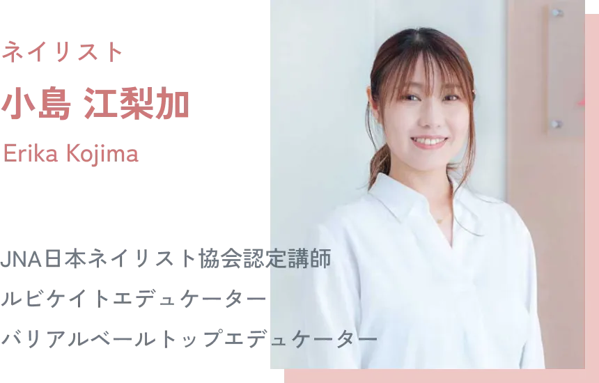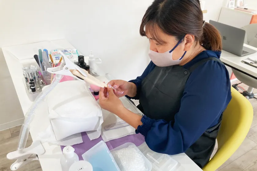 試験官を務める認定講師経験を活かし、大人のためのネイルスクールを開校。4児の母として育児と仕事を両立してきた経験から、一人ひとりに寄り添った丁寧な指導を大切にしています